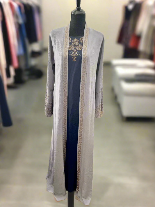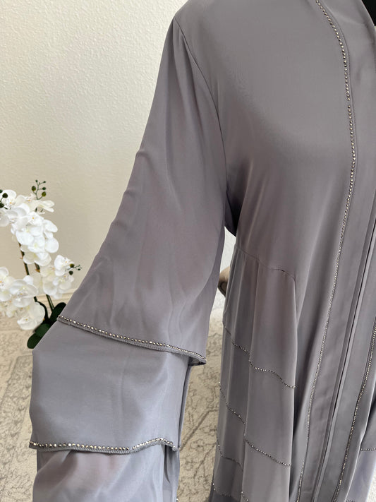 Sold outOpulent Grey Strass Layered Abaya