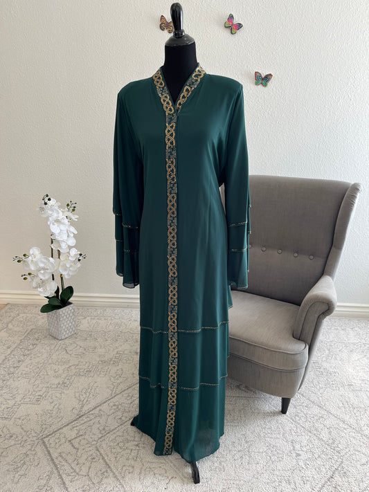 Emerald Glow Layered Abaya With Hijab