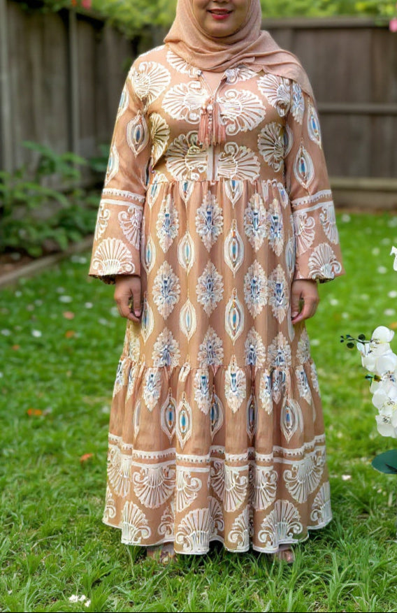 Beige Printed Cotton Dress