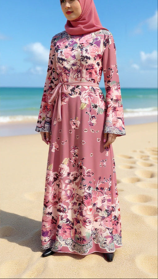 This expertly crafted floral chiffon dress features a fully lined design, including the sleeves, ensuring both comfort and modesty. Its lightweight fabric and delicate floral pattern make it an elegant choice for any occasion, while the full lining provides a smooth fit and prevents transparency. Ideal for those seeking a refined and breathable dress with impeccable attention to detail.